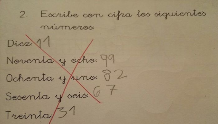 La pregunta que el profesor hizo fue la siguiente: «Escribe con cifras los siguientes números«. El niño de tan solo siete años de edad, de forma inocente y literal, comprendió como «números siguientes» a los que estaban puesto en la prueba. De allí surgió tal problema.