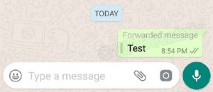 Y la otra característica que es la protagonista de hoy, es que podemos saber si el mensaje que hemos recibido, ha sido reenviado o ha sido escrito por la persona que envía el mensaje, ¿cómo saberlo?, pues es muy sencillo, cuando los mensajes que recibamos sean reenviado, dirá “reenviado” por encima del texto o contenido que hemos recibido. Te lo mostramos en la siguiente imagen: